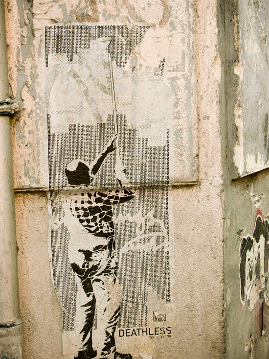 Aku pernah turun ke jalanan waktu malam, bersama tin cat sembur di tangan dan beberapa keping kadbod menyerang dinding-dinding kosong di kawasan awam dengan grafiti stensil aku. Tapi itu dulu.Kali ini aku mahu berkongsi bersama anda hasil seni seorang artis jalanan Boxi dari Britain, yang mengorak langkah populariti setiap hari dengan menyerang tembok-tembok di Jerman dengan hasil kerja seni beliau yang realistik. Beliau menggunakan teknik multi-layered stencil (bagi aku amat susah) dengan skala penuh. Macam biasa, walaupun artis jalanan, Boxi mempunyai Sarjana dalam Seni Halus Catan dari London St. Martins School of Art.